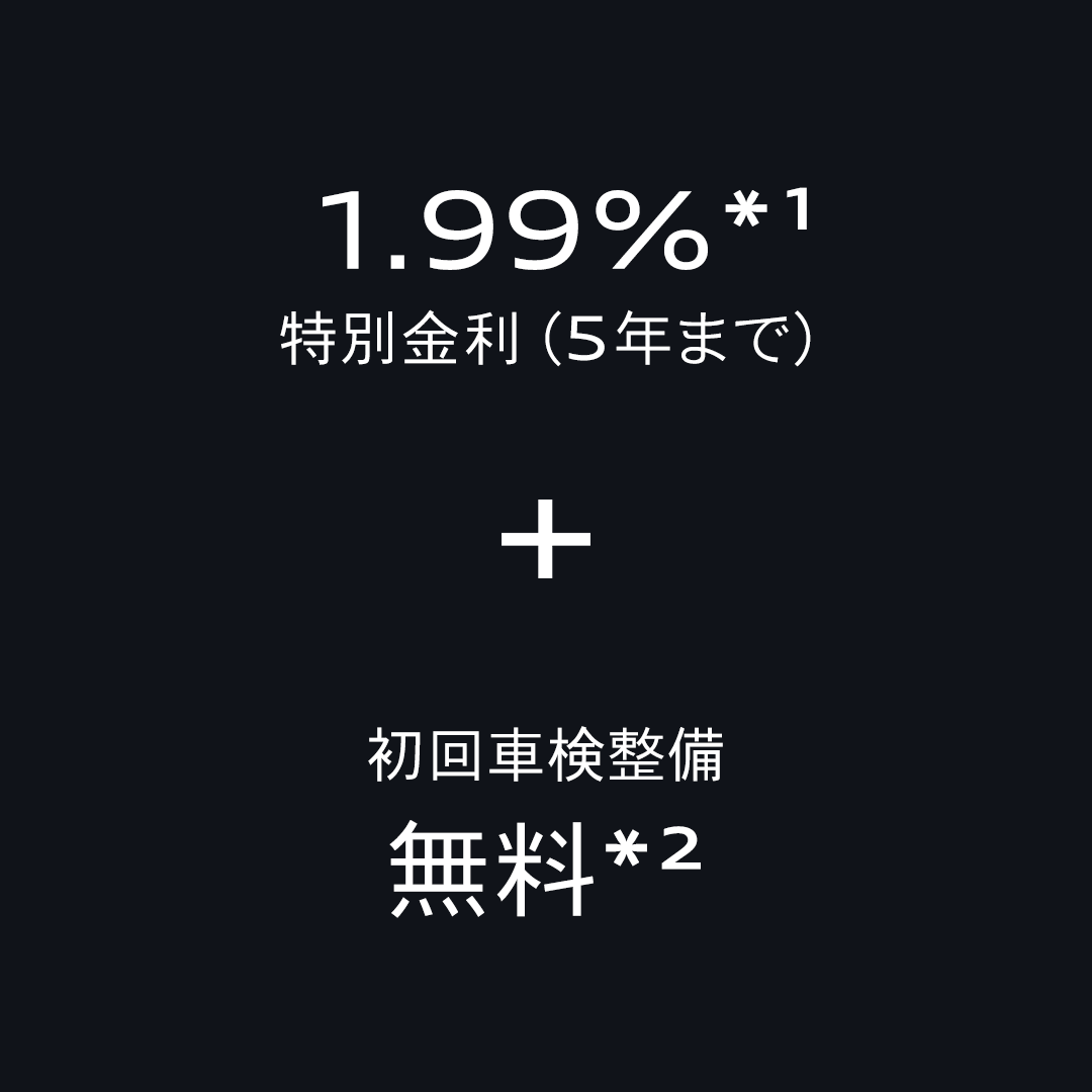 適用金利(5年まで)1.99% + 初回車検整備 無料